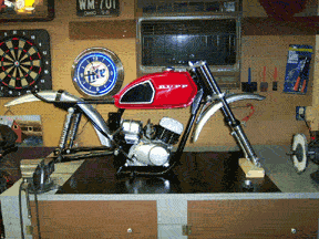 This bike pictured below is a L-100 which has a custom paint job to match Mickey Rupp's SS-5, with the exception of this one having power coated handlebars and not having a head light or tail light. Rupp L-100