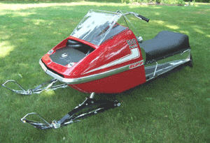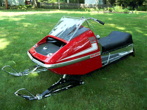 Quick Specs: Brand: 1971 Rupp Magnum 800cc Owner: Joe Francis Manistique, MI Motor: Tohatsu F/A 800cc The 1971 Magnums featured tuned pipes, Keihin carburetors, a triple chain drive system, a slide rail suspension, and a pleated racing style naugahyde seat. Rupp characterized their sled as being "mean-looking, like a race-bred winner." This example, an 800 model, is completely restored. In Joe's own words, "I purchased that sled from Tom Metsa in November 2004 and have given it a complete restoration. We took it to the Eagle River show and won Best of Show with it" The Sled: